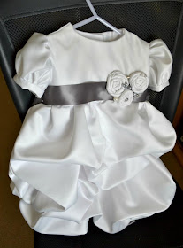 The first step in the process was to add a lining to the skirt, which was not part of the pattern I bought... So after making a lining that was just the right length, I turned the hem of the skirt into a bubble hem. Then, I just followed the directions for pick-ups. It was EASY, and after getting it all together, and embellishing it with some rosettes, I was so excited to try another one. Here are some pictures with her in it: